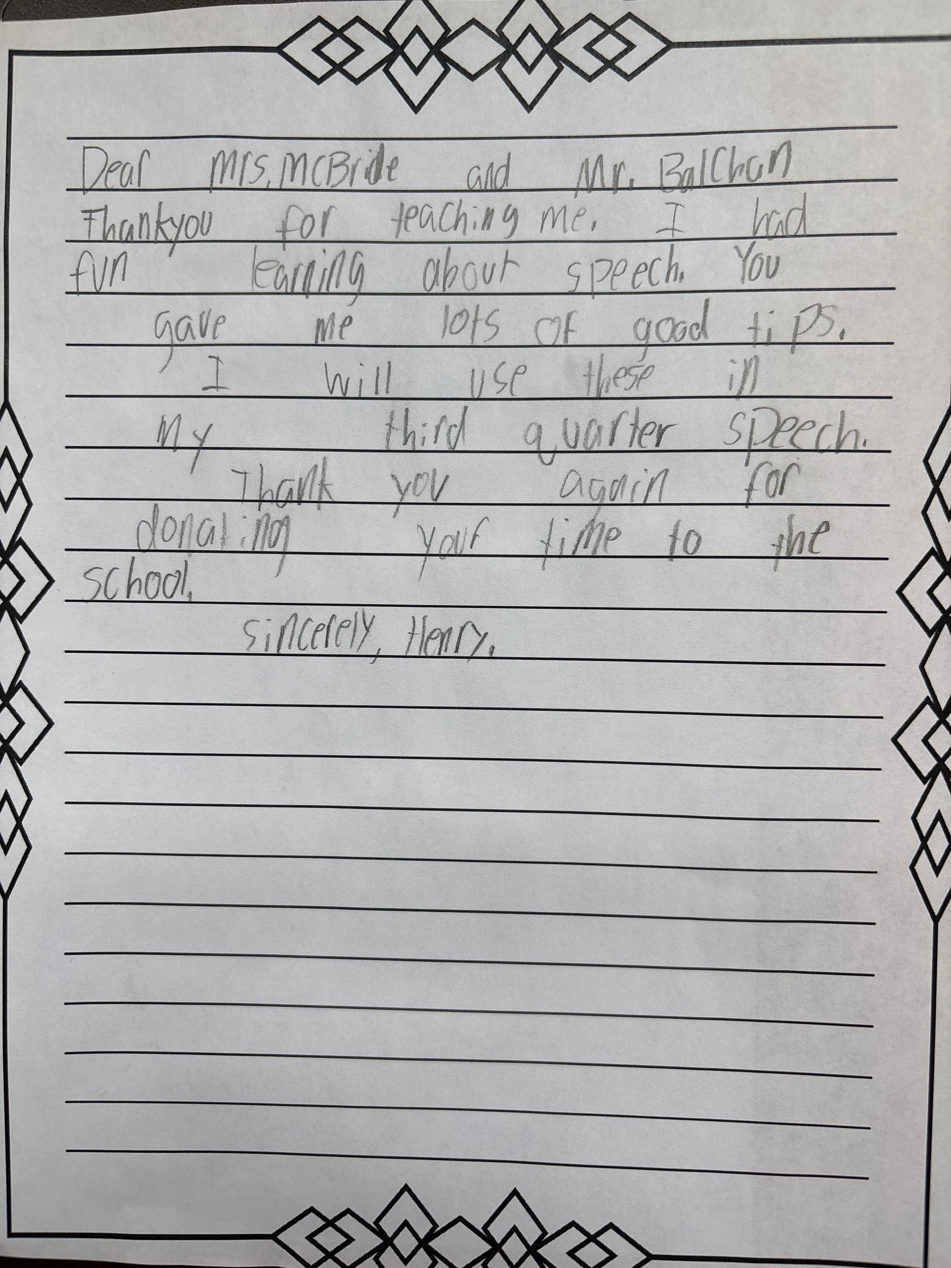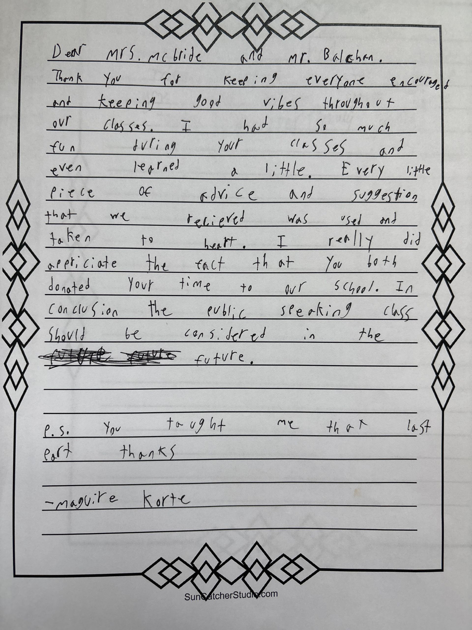 - "I am thankful for the middle school team always working so well together, especially how Kim and Becky are always so well prepared for everything and help me whenever I have questions about being a homeroom teacher or anything else. I'm also very thankful for our students and families."